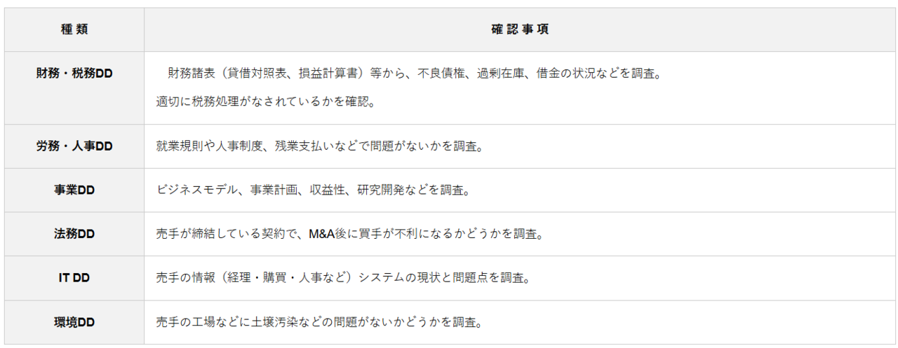 企業調査(DD)の種類と確認事項